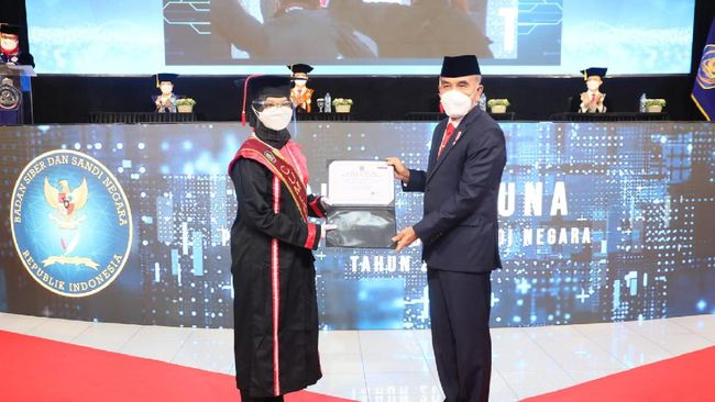 "Kalian yang hebat wisudawan yang kami banggakan. Kalian adalah menjadi patriot-patriot pembela bangsa khususnya patriot yang akan menjaga ruang siber Indonesia," ungkap Hinsa.