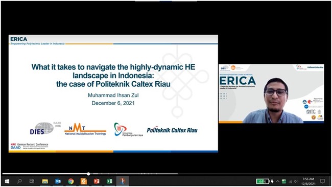Ketua Komite program ERICA (Empowering Polytechnic Leaders in Indonesia) yang juga alumni DIES IDC 2020, Eddy Yusuf, Ph.D bersama rekan dari PCR, Muhammad Ihsan Zul, S.Pd., M.Eng, alumni Dies NMT Indonesia tahun 2018 (program saat itu bernama Indonesia Deans' Course for Private Higher Education Institution atau INADC-PHEI) mengajukan proposal peningkatan kapasitas pimpinan politeknik swasta di Indonesia dengan nama program ERICA.