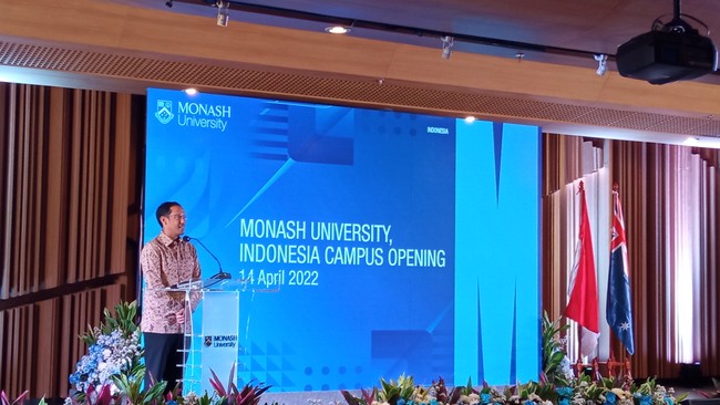 "Kami sangat bangga karena tepat dua tahun setelah pidato (kerja sama Indonesia dengan Australia oleh Presiden Joko Widodo) dan di tengah pandemi, kita ada di sini untuk membuka kampus kita," ujar Margaret Gardner dalam acara Monash University Campus Opening di Kampus Monash University BSD Tangerang, Kamis (14/4/2022).