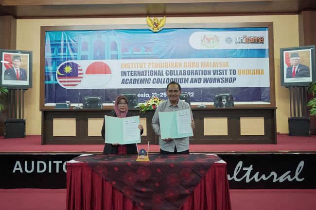 Nota kesepahaman (MoU) ditandatangani oleh Rektor Unikama Pieter Sahertian, dan Perwakilan Institut Pendidikan Guru Malaysia Kartini binti Abdul Mutalib di Auditorium Unikama pada Jumat (22/7) lalu.