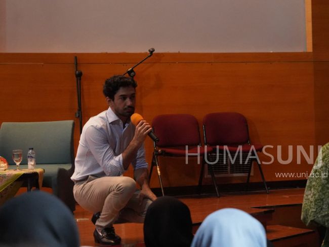Aktor Reza Rahadian baru-baru ini mengajar di Universitas Negeri Jakarta (UNJ) dalam rangka Kuliah Kolaborasi Praktisi Mengajar. Perkuliahan berlangsung di Gedung Ki Hajar Dewantara Lantai 9, Kampus A UNJ, Rabu (7/6/2023).