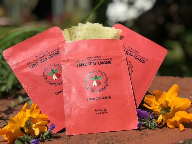Sabun tangan kertas yang diciptakan dari bahan ekstrak daun jambu air ini memiliki beberapa kelebihan yakni membersihkan tangan, melembabkan dan mencerahkan kulit, serta praktis dibawa ke mana-mana karena berupa sabun kertas.
