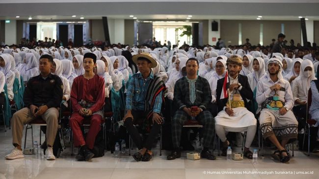 Universitas Muhammadiyah Surakarta (UMS) menyambut 3.011 mahasiswa baru (maba) 2023 dalam acara Masa Ta'aruf (Masta) Gelombang 2, di Gedung Edutorium KH Ahmad Dahlan, Senin (21/8/2023).