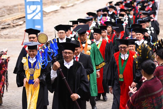 Universitas Sumatera Utara (USU) menggelar Sidang Terbuka Dies Natalis ke-71 di Auditorium, Selasa (24/10). Sejumlah tokoh nampak hadir langsung maupun secara virtual di antaranya Ketua Majelis Wali Amanat Nurmala Kartini Pandjaitan, Menteri Pendidikan, Kebudayaan, Riset dan Teknologi Nadiem Makarim, Pj Gubernur Sumatera Utara Hassanudin dan penyanyi yang sedang naik daun Ghea Indrawari.