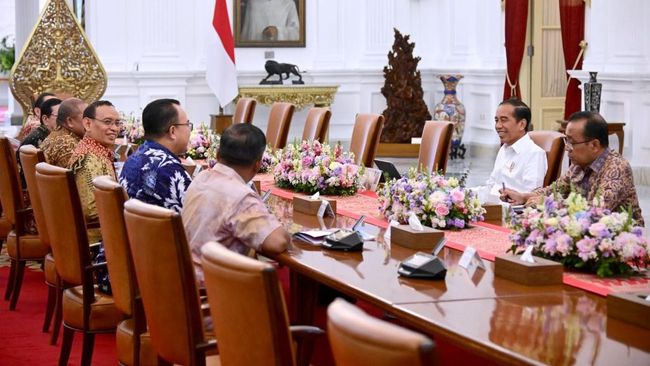 Presiden Joko Widodo membahas tantangan menuju Indonesia Emas 2045 bersama pengurus Forum Rektor Indonesia (FRI) baru-baru ini. Ketua FRI sekaligus Rektor Universitas Airlangga (Unair) Prof Mohammad Nasih mengatakan, Jokowi memberikan tugas pada FRI untuk menyusun hal-hal kebutuhan mencapai visi 2045 secara lebih teknis.
