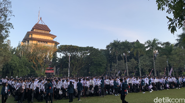 Pantauan detikEdu di lapangan rektorat UB, Malang, Jawa Timur pada Senin (12/8/2024) ini, ada sekitar 19 maba disabilitas yang mengikuti PKKMB UB yang bertajuk Rangkaian Acara Jelajah Almamater Universitas Brawijaya (RAJA Brawijaya). 19 Maba disabilitas itu tampak nyaman mengikuti RAJA Brawijaya di antara total 14.821 maba.