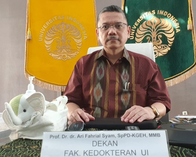 Prof Dr dr H Ari Fahrial Syam, SpPD-KGEH, MMB, FINASIM, FACP, Dekan Fakultas Kedokteran UI (FKUI) lolos menjadi calon rektor UI. Ini target 100 hari dokter teladan ini bila menjadi rektor UI.