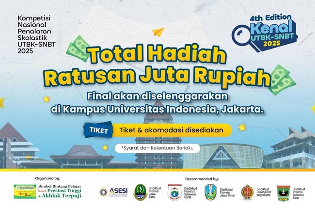 - Beasiswa 100% les di Bintang Pelajar senilai total puluhan juta rupiah untuk pemenang.