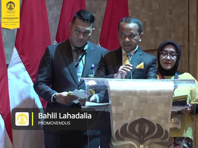 Seperti diketahui, Bahlil yang juga Ketua Umum Partai Golkar telah menjalani sidang terbuka promosi doktor di SKSG UI pada Rabu (16/10/2024).