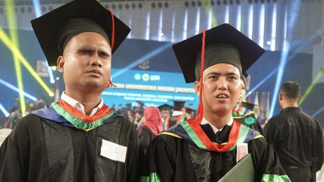 Keterbatasan tidak menghalangi Rovan dan Rohmat untuk menjadi sarjana. Dua mahasiswa disabilitas dari Program Studi Pendidikan Agama Islam (PAI), Fakultas Ilmu Sosial dan Hukum (FISH) angkatan 2020 Universitas Negeri Jakarta (UNJ), itu akhirnya lulus kuliah.
