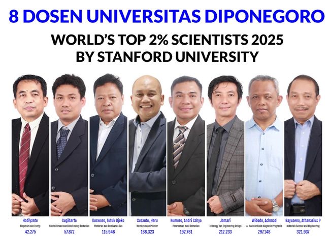 Berikut ini adalah profil 8 Ilmuwan UNDIP 2% teratas dunia tahun 2025.