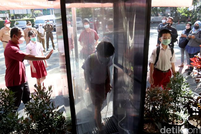 Kesiapan sekolah itu diantaranya ketersediaan sarana sanitasi dan kebersihan seperti toilet bersih, sarana cuci tangan dengan air mengalir menggunakan sabun atau cairan pembersih tangan, dan disinfektan.