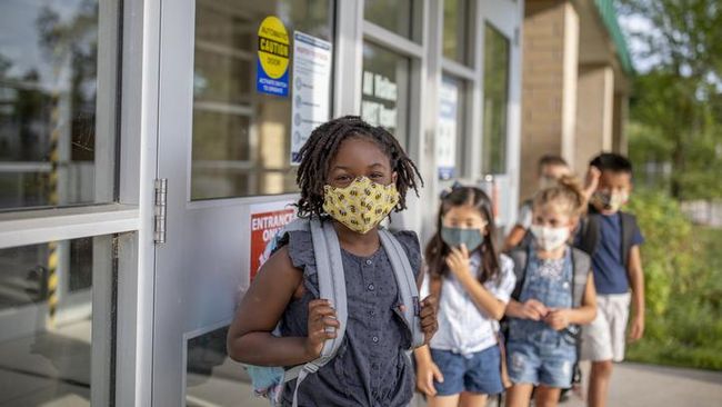 "Di sini sekolah tatap muka itu harus full pakai masker. Anak saya ke sekolah naik bus, jadi mereka yang memilih sekolah tatap muka dilengkapi name tag yang isinya semacam daftar periksa. Misal, kondisi anak harus dicek apakah dia demam atau flu, atau ada keluhan lain. Sebelum anak sekolah kita harus cek dan orang tua harus memberikan tanda tangan di name tag tersebut dan anak pun boleh berangkat ke sekolah," papar Ana.