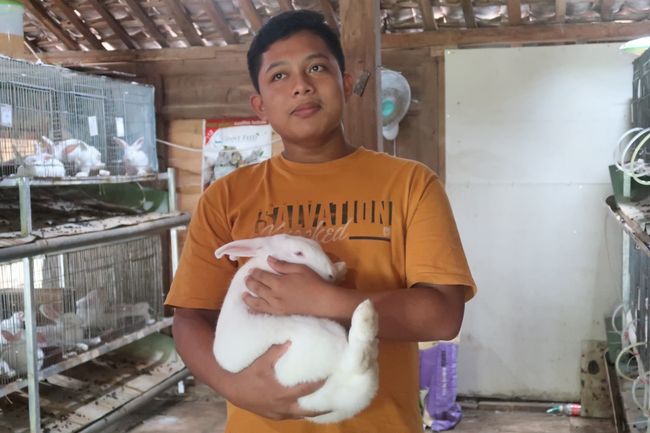 "Karena saya lihat prospeknya bagus terus saya belajar di YouTube dan belajar sama peternak lain untuk mengembangbiakkan kelinci. Setelah berjalan, mulai awal 2021 itu saya membesarkan kandang di rumah belakang yang tidak dipakai ini," ujarnya.