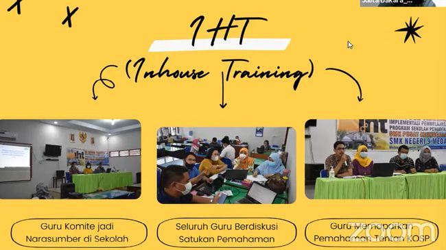 SMK 9 juga mengadakan In House Training (IHT). Dalam IHT, guru komite menjadi narasumber di sekolah dan memberikan pemaparan yang diterima dalam program Sekolah Penggerak. Nantinya, para guru diajak berdiskusi untuk menyatukan pemahaman, membagikan visi misi kepada setiap jurusan serta menganalisis.