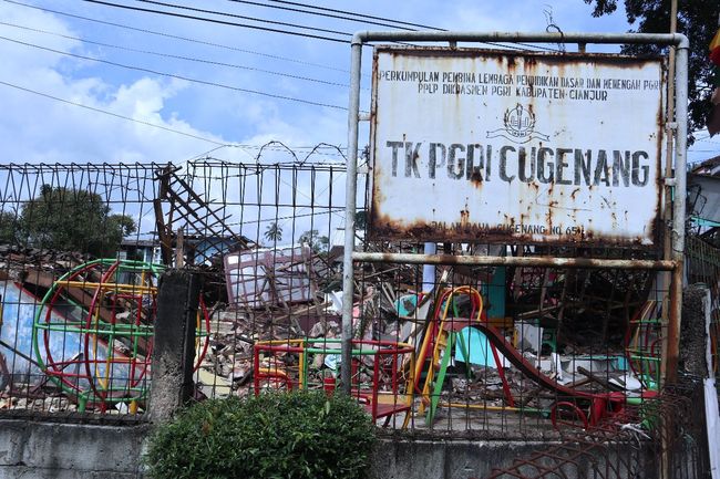 Sementara itu, TK PGRI Cugenang di sebelah SDN Cugenang ambruk akibat Gempa Cianjur hingga rata dengan tanah.