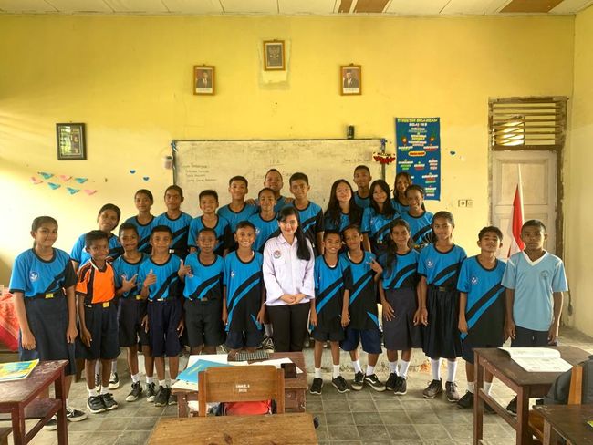 "Baru-baru ini pengabdian masyarakat (program dari dosen kampus dan mahasiswa lainnya) ke pulau Kairatu. Kami naik kapal feri dan kemudian naik angkot. Di sana, saya mengajar di SMP 1 Kairatu," ujar Maria.