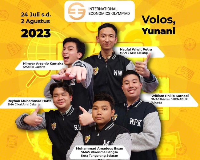 IEO adalah kompetisi tahunan untuk siswa SMA di seluruh dunia pada bidang ekonomi, bisnis, dan keuangan. Lima siswa yang berkompetisi IEO 2023 yaitu:
