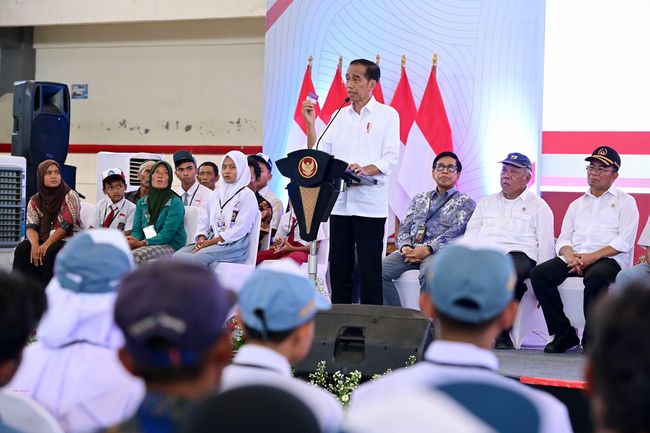 Presiden Joko Widodo menyerahkan bantuan Program Indonesia Pintar (PIP) di GOR Mustika Blora, Jawa Tengah pada Selasa (23/1/2024). Dalam sambutannya, ia menyebut dana Kartu Indonesia Pintar (KIP) tidak boleh dibelikan pulsa.