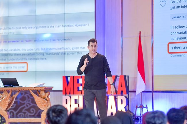 Malan sendiri akan mengajar langsung 272 guru terpilih se-Indonesia penerima beasiswa Microcredential CS50x Indonesia-Harvard University 2024 dari Kemendikbudristek dan LPDP di workshop digital skill di Jakarta Intercultural School (JIS), 8-9 Maret 2024.