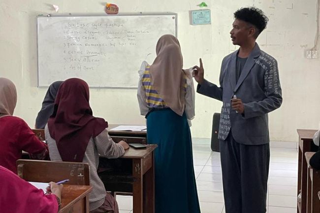 Hanya saja memang tidak rutin seperti setelah diterapkannya kurikulum merdeka. Sejak tahun 2020, Indra sengaja mengenakan karya siswa setiap hari Kamis dan Jumat atau ketika saat mata pelajaran produksi.