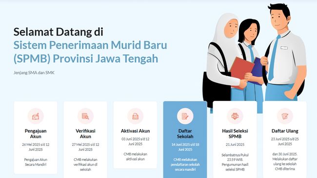 Pendaftaran Sistem Penerimaan Murid Baru (SPMB) jawa Tengah (Jateng) Tahap 2 dibuka. Siapa saja yang bisa mendaftar?