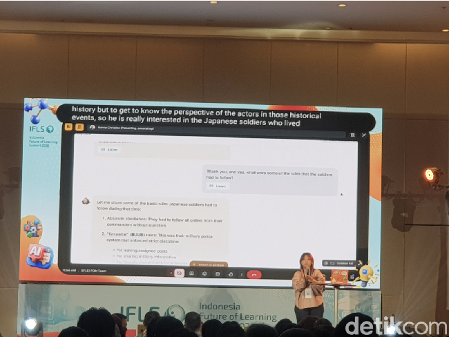 "Mungkin dulu kalau kita bikin slides atau cari artikel itu bisa berjam-jam. Pulang kerja, kerja lagi. Sekarang kita bisa mengurangi itu dan energi kita bisa digunakan untuk bantu murid kita untuk mendalami materi," tutur Hanna dalam acara Indonesia Future of Learning Summit 2025 di Hotel Episode, Gading Serpong, Sabtu (23/8/2025).
