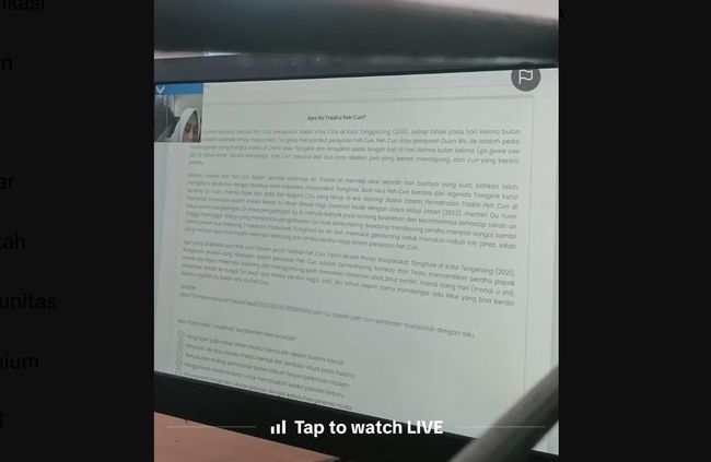 Tes Kemampuan Akademik (TKA) perdana dilaksanakan Senin (3/11/2025) ini untuk tingkat SMA/SMK/MA. Namun, ada saja yang melakukan kecurangan saat TKA, siaran langsung di media sosial (medsos).