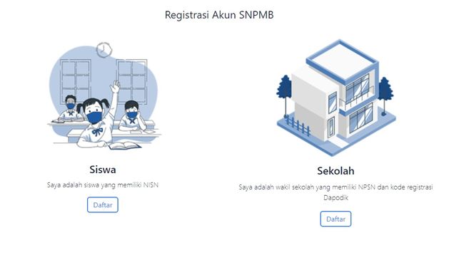 - Klik lagi tombol "Daftar" pada bagian akun siswa