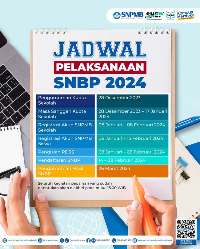 Pendaftaran SNBP 2024 dimulai dari 14-28 Februari 2023. Siswa yang sudah melakukan simpan permanen akun SNPMB dapat melakukan tahapan ini.