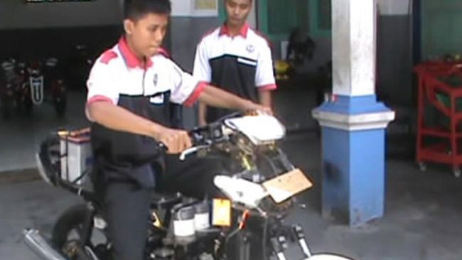 Seperti yang dilakukan oleh SMK Teknologi Balung, Jember, Jawa Timur. Bermodal bahan bekas, para siswa merakit motor berbahan bakar air yang ramah lingkungan dan berbiaya murah. Keren!