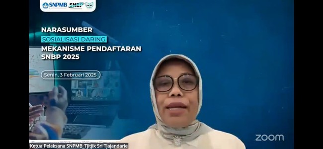 Ketua Pelaksana Seleksi Penerimaan Mahasiswa Baru (SNPMB) 2025, Prof Tjitjik Sri Tjahjandarie, PhD menegaskan tak ada perpanjangan waktu pengisian pangkalan data sekolah dan siswa (PDSS) dalam Seleksi Nasional Berdasarkan Prestasi (SNBP).