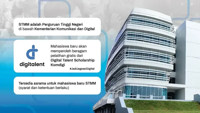 Sebagai informasi STMM adalah perguruan tinggi negeri di bawah Kementerian Komunikasi dan Digital (Komdigi) yang terletak di Yogyakarta. Setiap mahasiswa baru STTM akan memperoleh beragam pelatihan gratis dari Digital Talent Scholarship Komdigi.