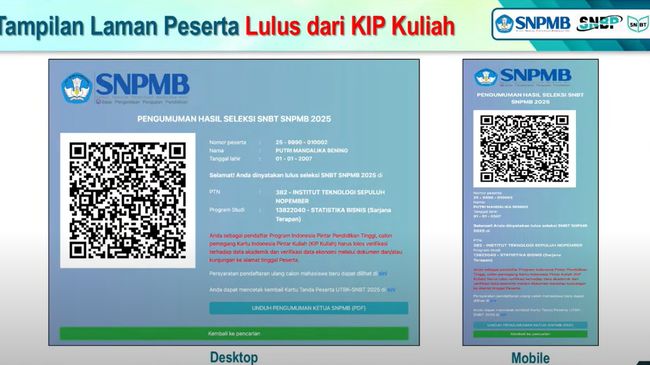 Lantas, seperti apa tampilan akun peserta lolos KIP Kuliah di SNBT 2025? Berikut penjelasannya.