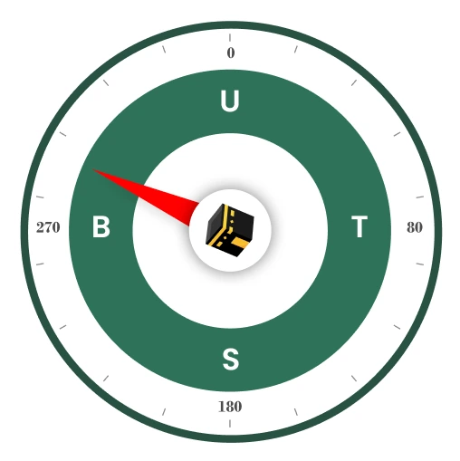 Gerakkan handphone/ponsel Anda hingga kompas menampilkan indikator warna kuning sebagai penanda arah kiblat.
