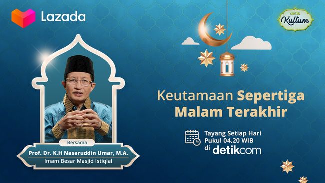 Selengkapnya detikKultum Nasaruddin Umar dapat ditonton DI SINI. Kajian bersama Nasaruddin Umar ini tayang setiap hari selama Ramadan pukul 04.20 WIB.