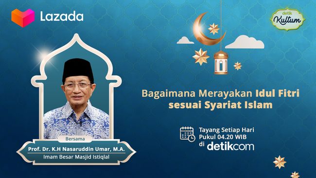 Meski berakhirnya Ramadan menyimpan kesedihan tersendiri, hendaknya muslim merayakan Idul Fitri dengan sukacita. Mengenai hal itu, Nasaruddin Umar dalam detikKultum detikcom menyampaikan sejumlah hal yang dapat dikerjakan muslim untuk merayakan Idul Fitri.