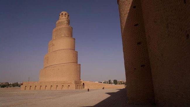Pertama, ada Masjid Agung Samarra di Irak yang memiliki menara spiral. Masjid ini pun tercatat sebagai situs warisan dunia UNESCO lho. Ismael Adnan/AFP/Getty Images