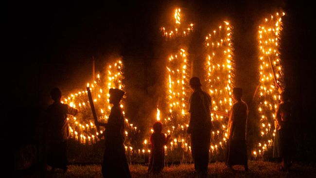 Sleman - Karya instalasi sentir buatan warga di Triharjo, Sleman, Yogyakarta, membentuk lafadz Allah demi menyambut bulan suci Ramadan.