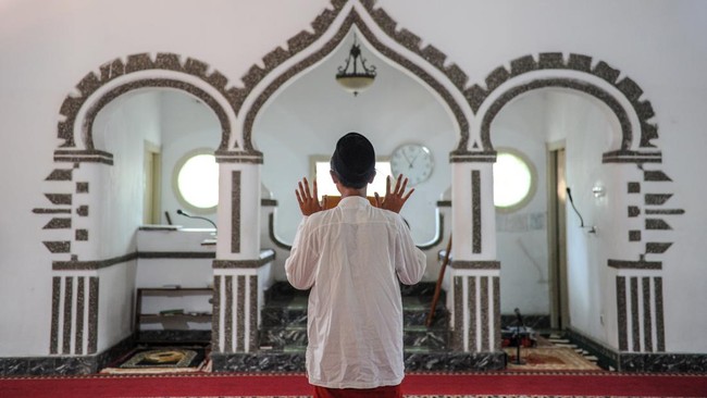 Santri melaksanakan Shalat Sunnah di Masjid Pesantren Sukamiskin, Bandung, Jawa Barat, Senin (3/4/2023). Pesantren Sukamiskin merupakan salah satu pesantren tertua di Kota Bandung bahkan di Jawa Barat.