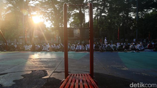 Jakarta - Taman Menteng juga menjadi lokasi salat Idul Fitri di Jakarta, Sabtu (22/4/2023). Begini suasananya.