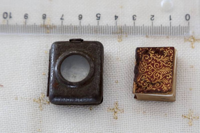 Al-Qur'an terkecil seukuran prangko ini telah turun-temurun diwariskan dalam keluarga Mario Prushi yang berada di Tirana, Albania. Al-Qur'an ini disimpan dalam kotak perak yang menghitam karena dimakan usia. (Foto: AFP)