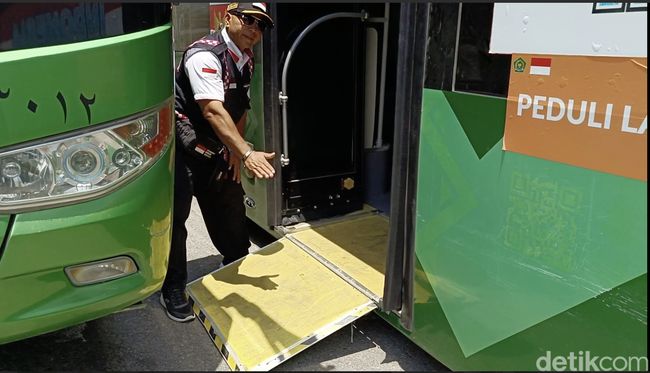 Jakarta - Jemaah haji pulang-pergi ke Masjidil Haram bisa dengan bus shalawat yang beroperasi 24 jam. Ada yang canggih khusus buat jemaah disabilitas juga lho!