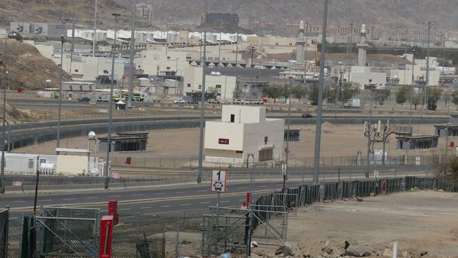 Suasana Muzdalifah yang akan digunakan jamaah seluruh dunia untuk mabit atau bermalam sebelum menuju Mina saat puncak ibadah haji di Mekah, Arab Saudi, Jumat (16/6/2023).