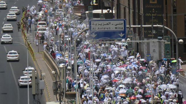 Arab Saudi - Umat Islam dari seluruh dunia memadati Makkah jelang puncak ibadah haji. Kondisi Masjidil Haram pun semakin padat, terutama pada waktu salat berjemaah.