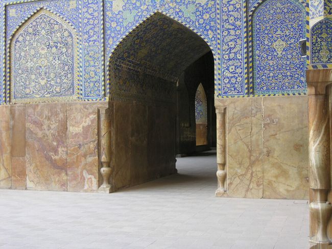 Isfahan - Masjid Shah di Isfahan, Iran, adalah contoh arsitektur Islam Persia yang dibangun pada abad ke-17. Bangunan ini dipenuhi dengan ukiran berwarna.