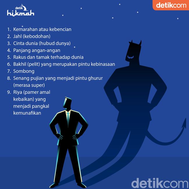 Jakarta - Setan bisa masuk ke dalam hati melalui banyak pintu dan memberi pengaruh buruk pada manusia. Semua dilakukan agar dapat menjerumuskan manusia ke dalam kesesatan