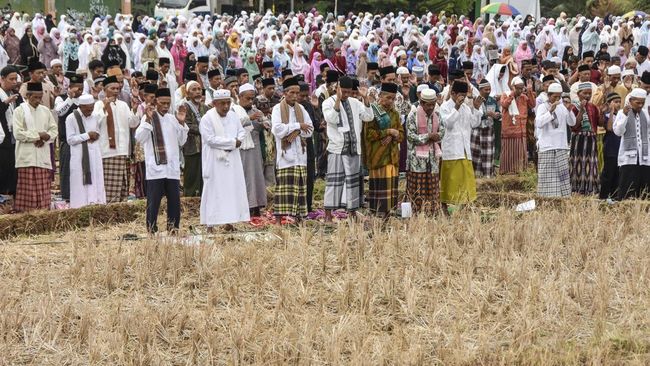 Ciamis - Warga Desa Pawindan, Kabupaten Ciamis, Jawa Barat, gelar salat Istisqa atau salat minta hujan. Salat dilakukan di persawahan yang kering.