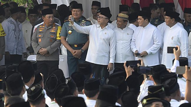 Jakarta - Apel Hari Santri Nasional (HSN) 2023 di Tugu Pahlawan, Surabaya, Jawa Timur, Minggu (22/10). Kegiatan ini dihadiri presiden Jokowi dan para menteri.