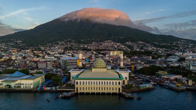 Ternate - Masjid Raya Al-Munawar di Ternate menjadi daya tarik bagi wisatawan untuk berwisata religi selama bulan Ramadan. Pemandangannya begitu indah.